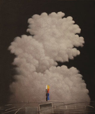 Ulje na platnu, 58 x 45 cm 1978, sign. Serija slika sa oblacima, poznatog beogradskog slikara, datira iz poletnog i veoma značajnog perioda ovog umetnika, koji je sebi tada postavio visoke i savremene standarde. Sa kolegom Damjanovskim posegnuo je za fenomenom oblaka, koristeći se savremenim dostignućima.