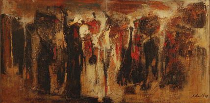 Ulje na platnu, 55 x 220 cm 2005, sign. Slikar koji je u savremeni izraz uneo iskustvo i predstavu srednjovekovnog ikonopisa i na taj način stvorio jednu pikturalnu poetiku koja ima istovremeno prizvuk starog i novog, figurativnog i apstraktnog, dekorativnog i simboličkog. Njegovi veliki tabloi, iako su na prvi pogled samo dekorativni, u svojim dubljim slojevima poseduju one slikarske kvalitete koji ih izdvajaju među dela punog likovnog sadržaja.