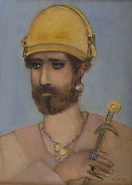 Ulje na platnu, 46 x 33 cm Sign. Slikarstvo ove umetnice poseduje dimenziju magičnog realizma, u komponovanju, stavu i tretmanu figura. Oči njenih likova su posebno izražajne, kao i kod ovog čuvenog grčkog heroja Trojanskog rata.
