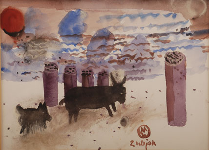 Tempera na kartonu, 103 x 72 cm 1970, sign. Jedan od najspecifičnijih autora na našoj savremenoj umetničkoj sceni, pomalo potisnut i zaboravljen, povremeno nas iznenadi radovima poput ovog, izvanrednim slikarskim senzibilitetom, crtačkim i kolorističkim rukopisom, koji ukazuju na jedan sasvim poseban slikarski izraz koji mu je obezbedio usamljeno ali istaknuto mesto u aktuelnom stvaralaštvu.