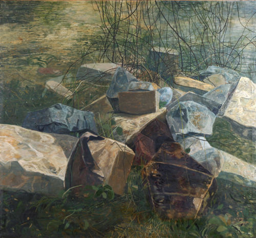 Ulje na platnu 114 x 124 cm. 1974. Sign. na poleđini. Dobitnik I nagrade Oktobarskog salona 1975. sa ovim delom.