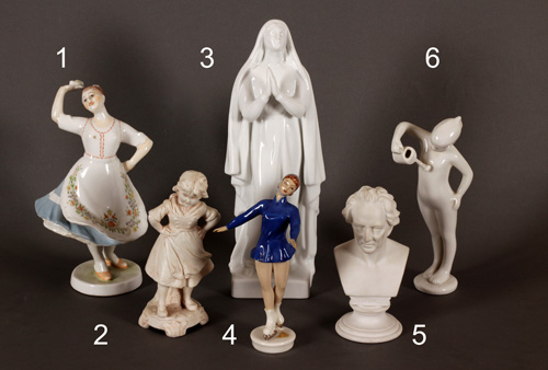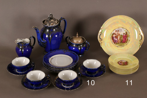 Žig: košnica. Oslikani mitološkim scenama. Prečnik većeg tanjira: 27 cm. (1+6 kom.)