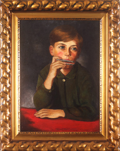 MLADEN JOSIĆ (1897-1972) Portret dečaka sa usnom harmonikom