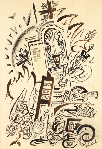 Tuš, akvarel na hartiji, 44x30 cm. 1985. Sign.