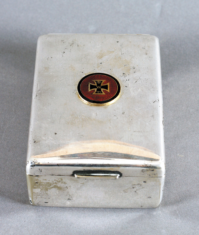 Posrebrena stona tabakera sa emajliranim amblemom cara Vilhelma, 1916