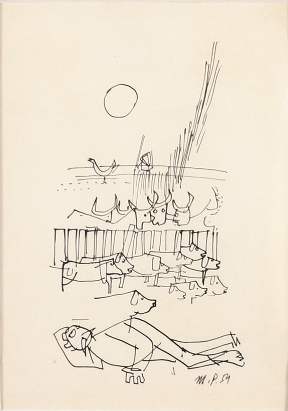 Olovka na hartiji 18,2x17 cm. 1970 Sign. Reprodukovano pod br.364 na str.93, Katalog Mića Popović, Sreto Bošnjak, Beograd,1994.