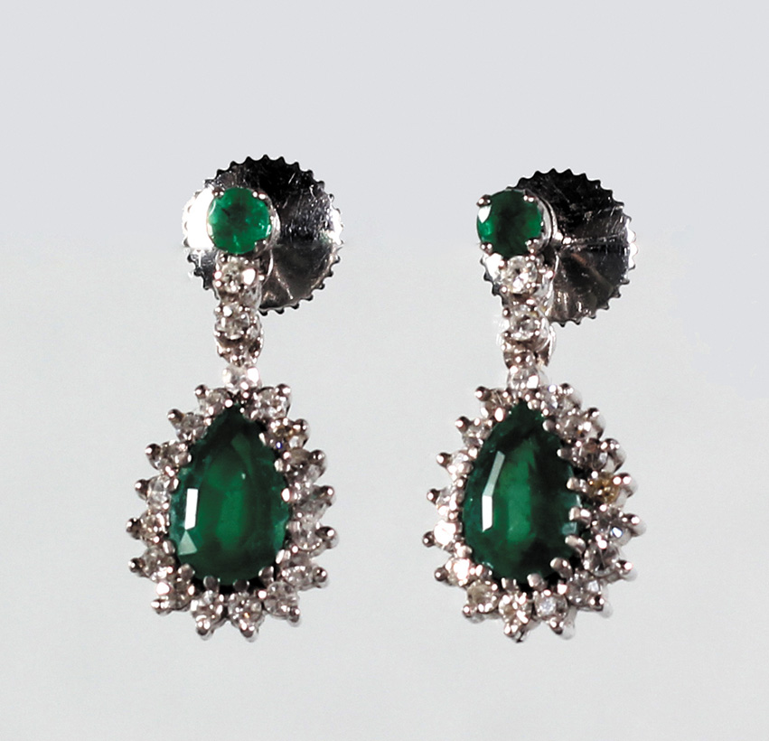 Minđuše od belog zlata sa smaragdom i dijamantima