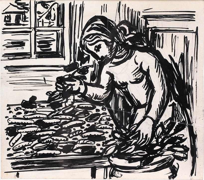 Tuš 7,8x12,4 cm. 1946 Sign. Reprodukovano pod br. 26 na str. 232, Katalog Mića Popović, Sreto Bošnjak, Beograd,1994.