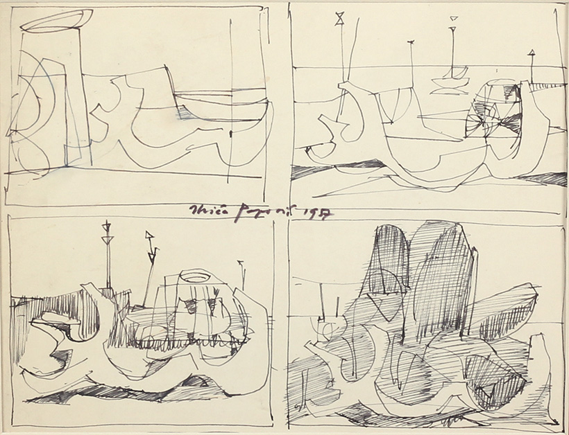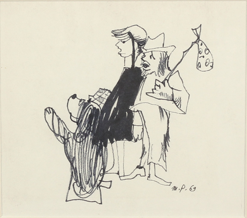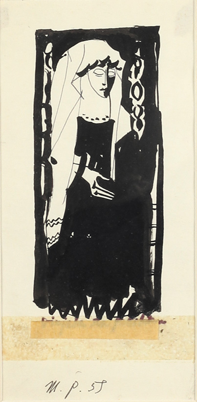 Tuš i flomaster na hartiji 18,5x15,5 cm 1960-65 Sign. Reprodukovano pod br. 296 na str. 254, Katalog Mića Popović, Sreto Bošnjak, Beograd,1994.