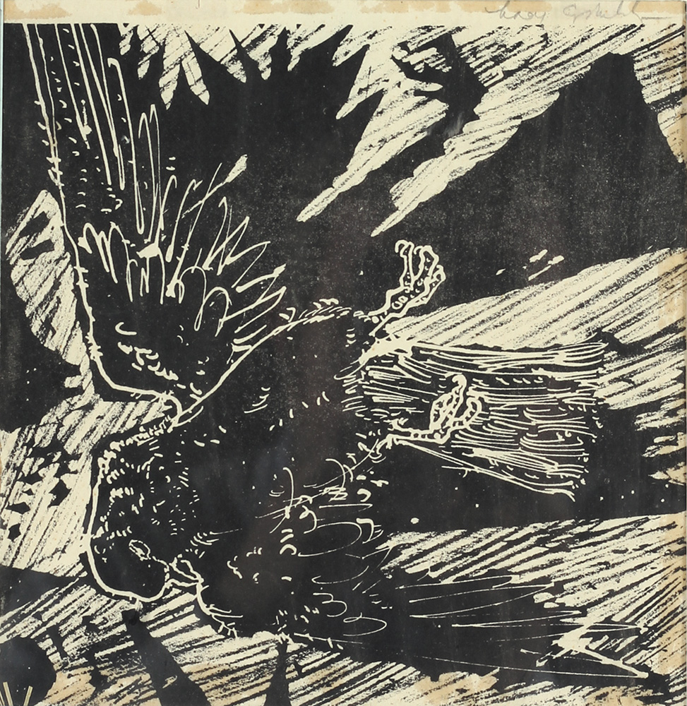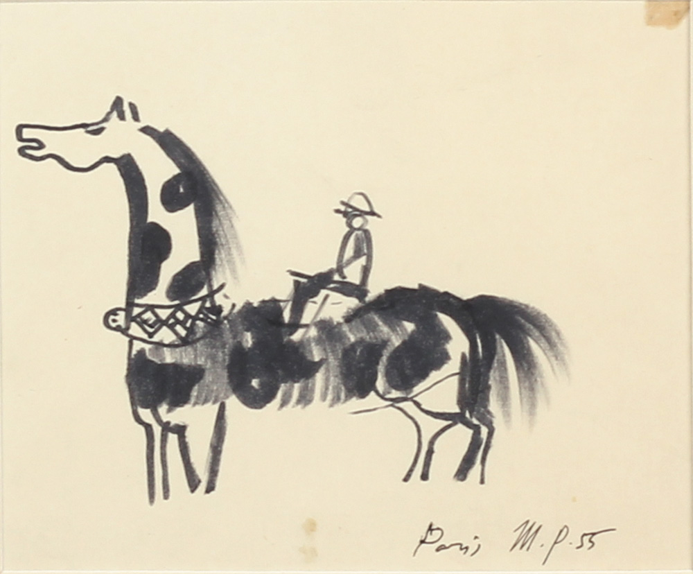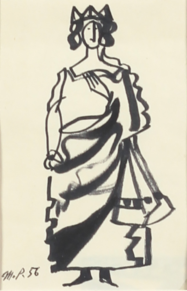 Flomaster na hartiji, 12,5x14,5 cm. 1955. Sign. Reprodukovano pod br. 176 na str. 244, Katalog Mića Popović, Sreto Bošnjak, Beograd, 1994.