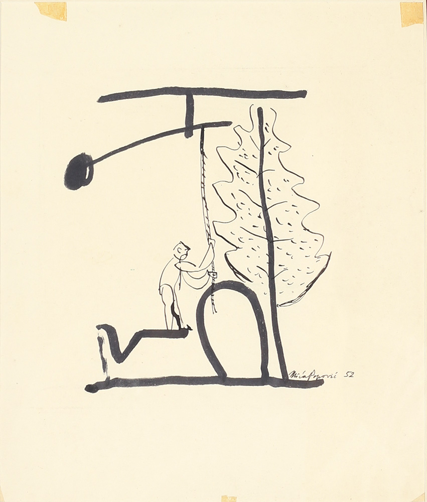 Tuš na hartiji 24,5x21 cm 1952. Sign. Reprodukovano pod br. 106 na str. 238, Katalog Mića Popović, Sreto Bošnjak, Beograd, 1994.