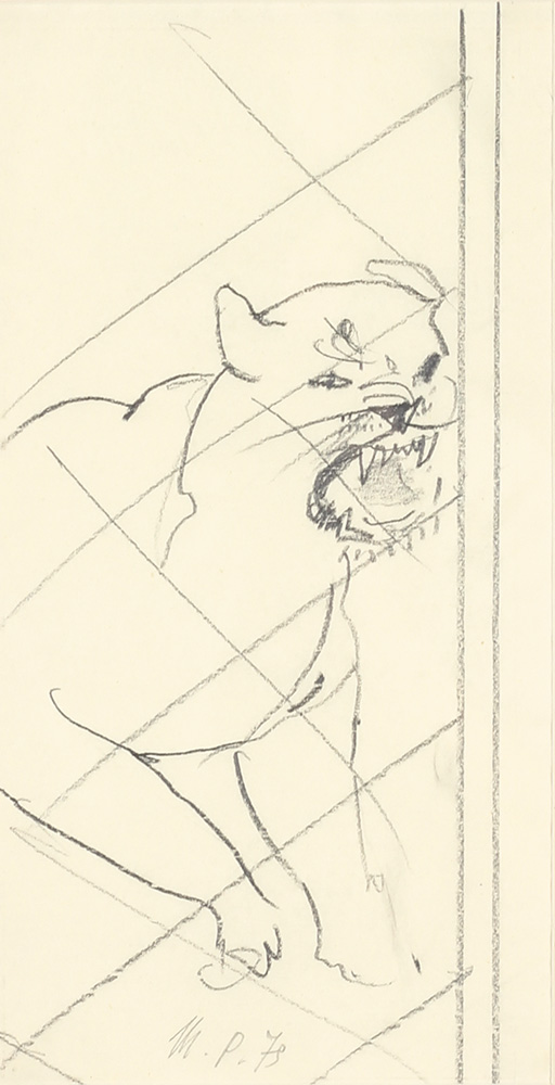 Olovka na hartiji 24x13 cm 1979. Sign. Reprodukovano pod br. 634 na str. 283, Katalog Mića Popović, Sreto Bošnjak, Beograd, 1994.