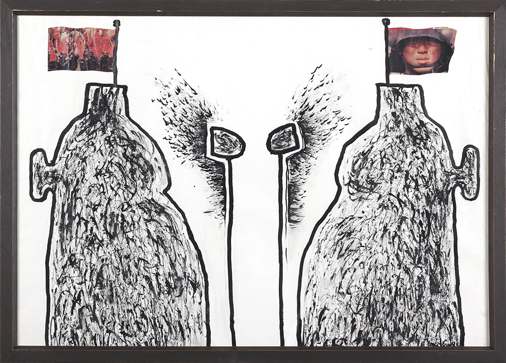 Ulje na hartiji, kolaž 70x100 cm 1985. Sign.