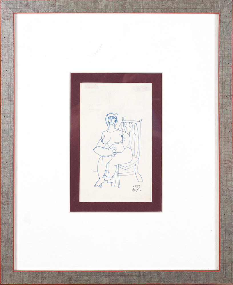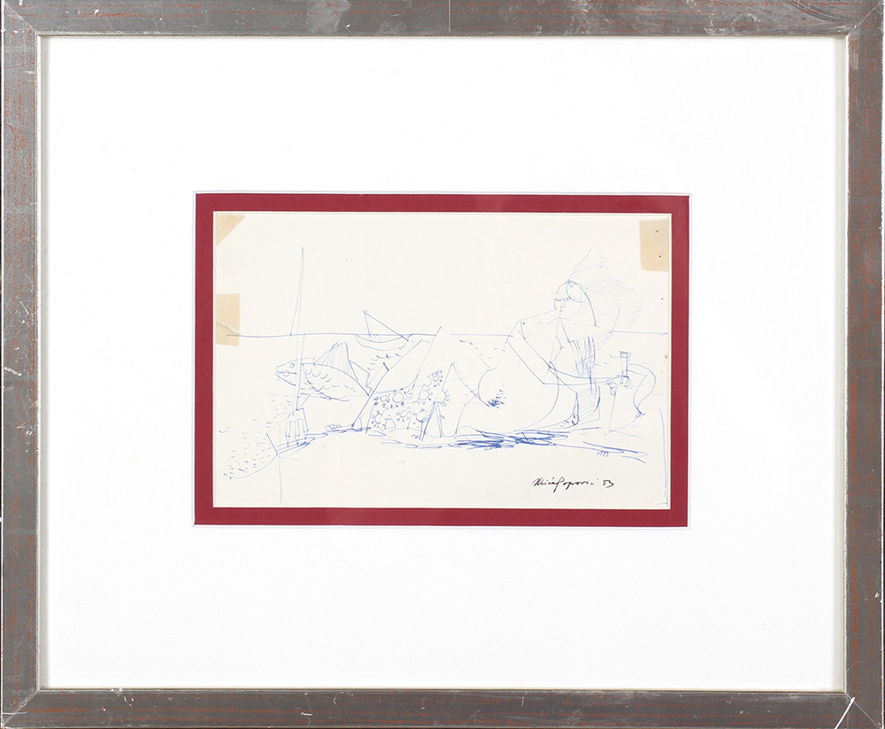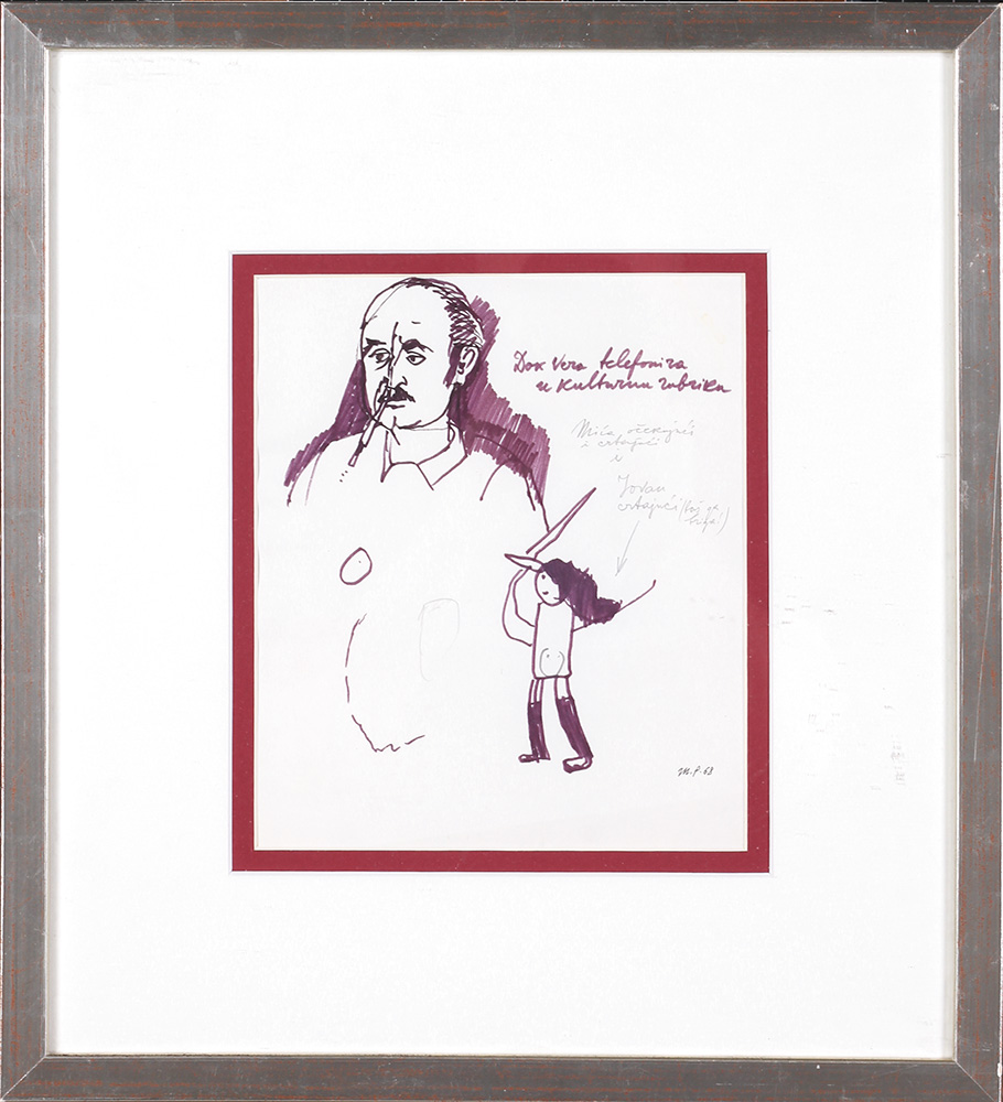 Flomaster na gartiji 24x20,8 cm 1968. Sign. Reprodukovano pod br. 336 na str. 258, Katalog Mića Popović, Sreto Bošnjak, Beograd, 1994.