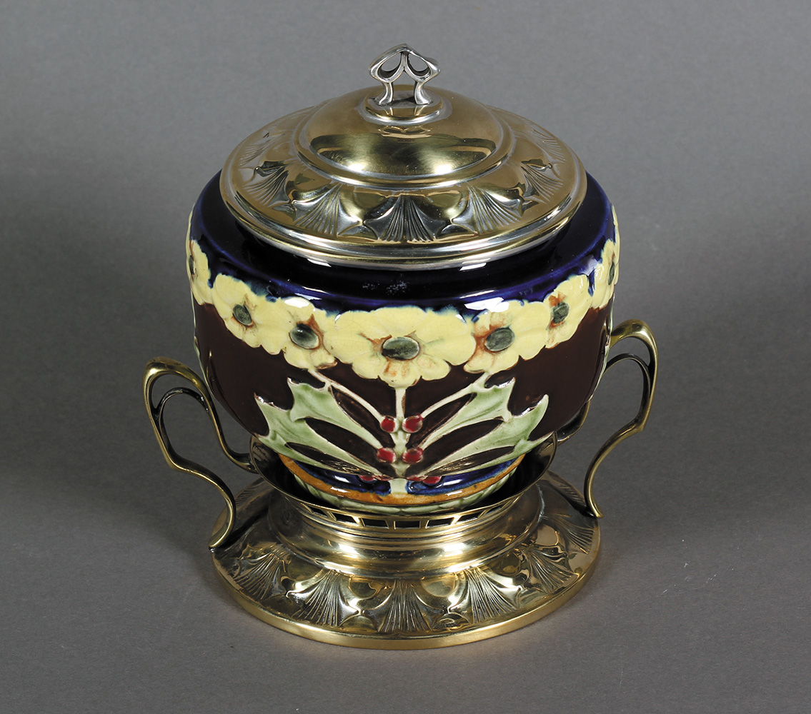 Staklo, ručno oslikano, mesing. Visina: 15 cm